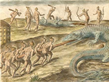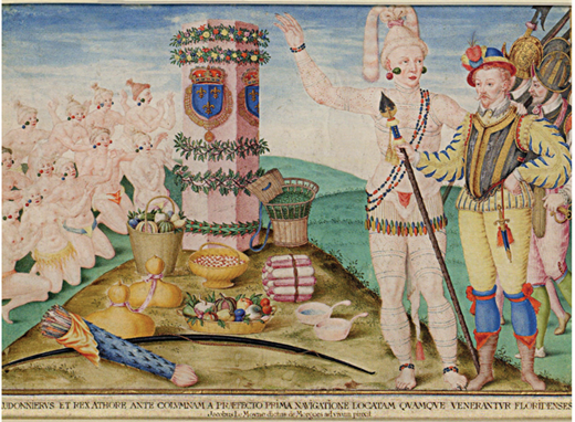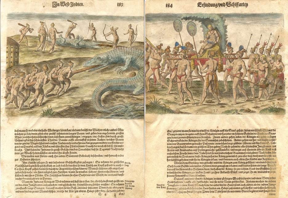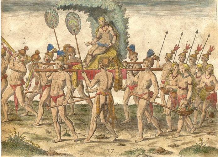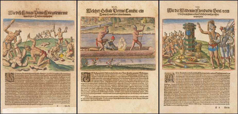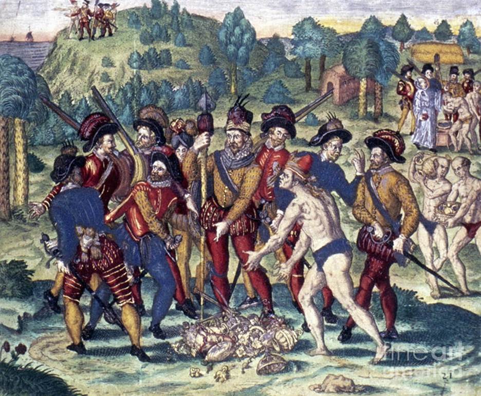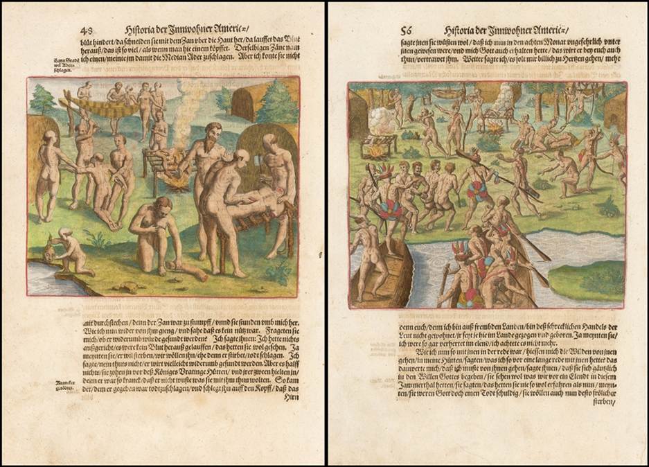 Here are some early paintings created by colonialists depicting the Native Americans: