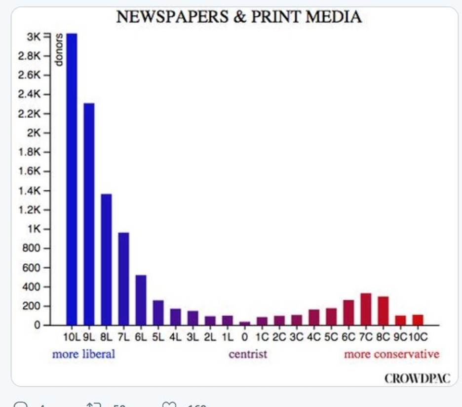 What’s funny is liberals don’t even seem to be aware of how biased the media is. The truth is that 94% of political donations from public media employees (like CNN or MSNBC) go to democrats (current).